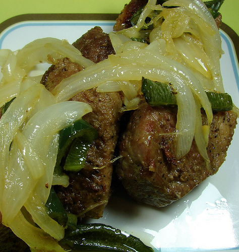 Similarly, carnitas are made with a fatty cut of pork, most often a butt or shoulder roast. It is seasoned and slowly cooked in its own fat. The resulting meat is fall-apart tender and flavorful. Some places will serve it slightly crisped and topped with grilled onions and peppers.